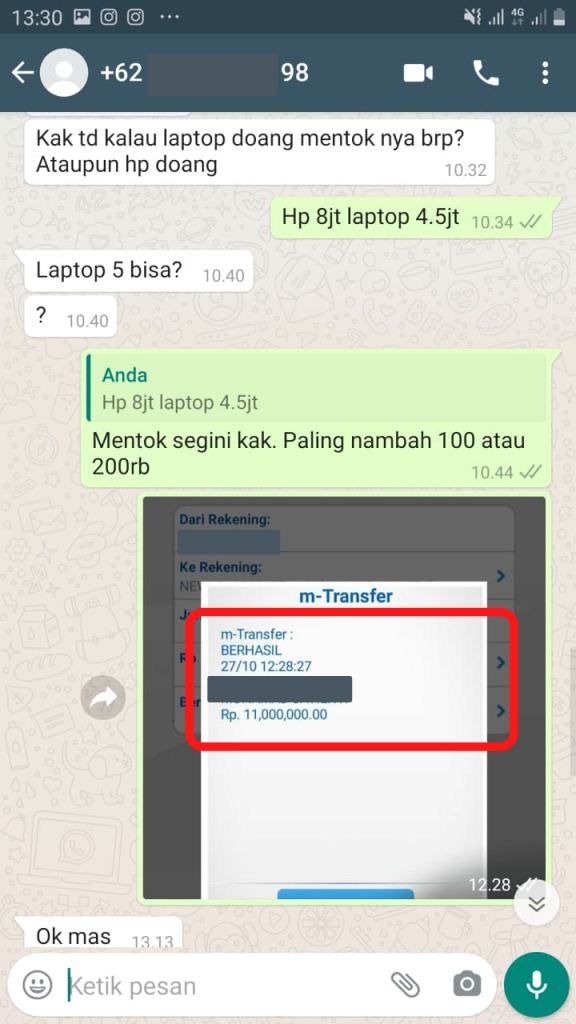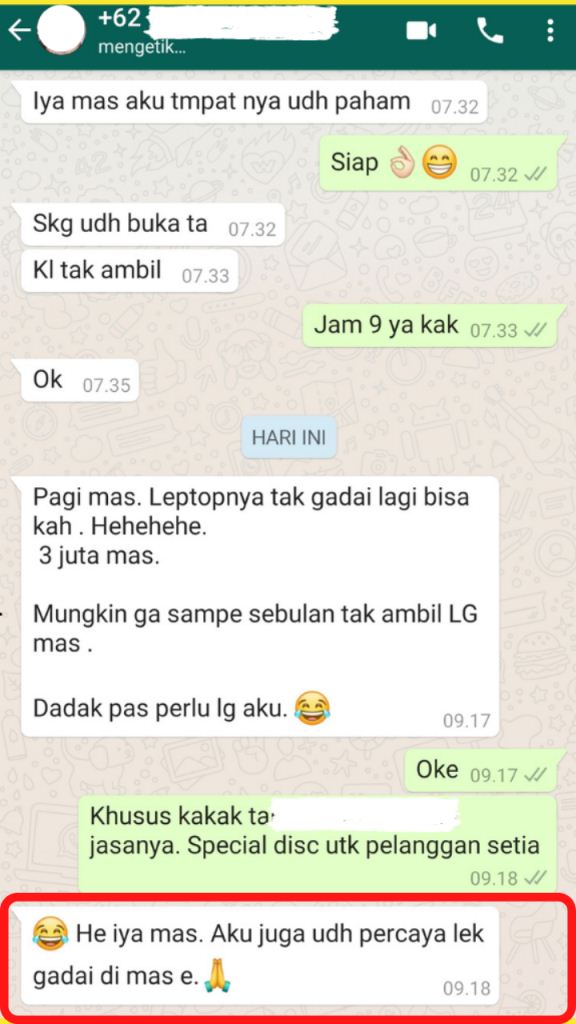 Untuk cek nilai taksiran bisa difotokan barangnya dan kirimkan ke nomor CS kami